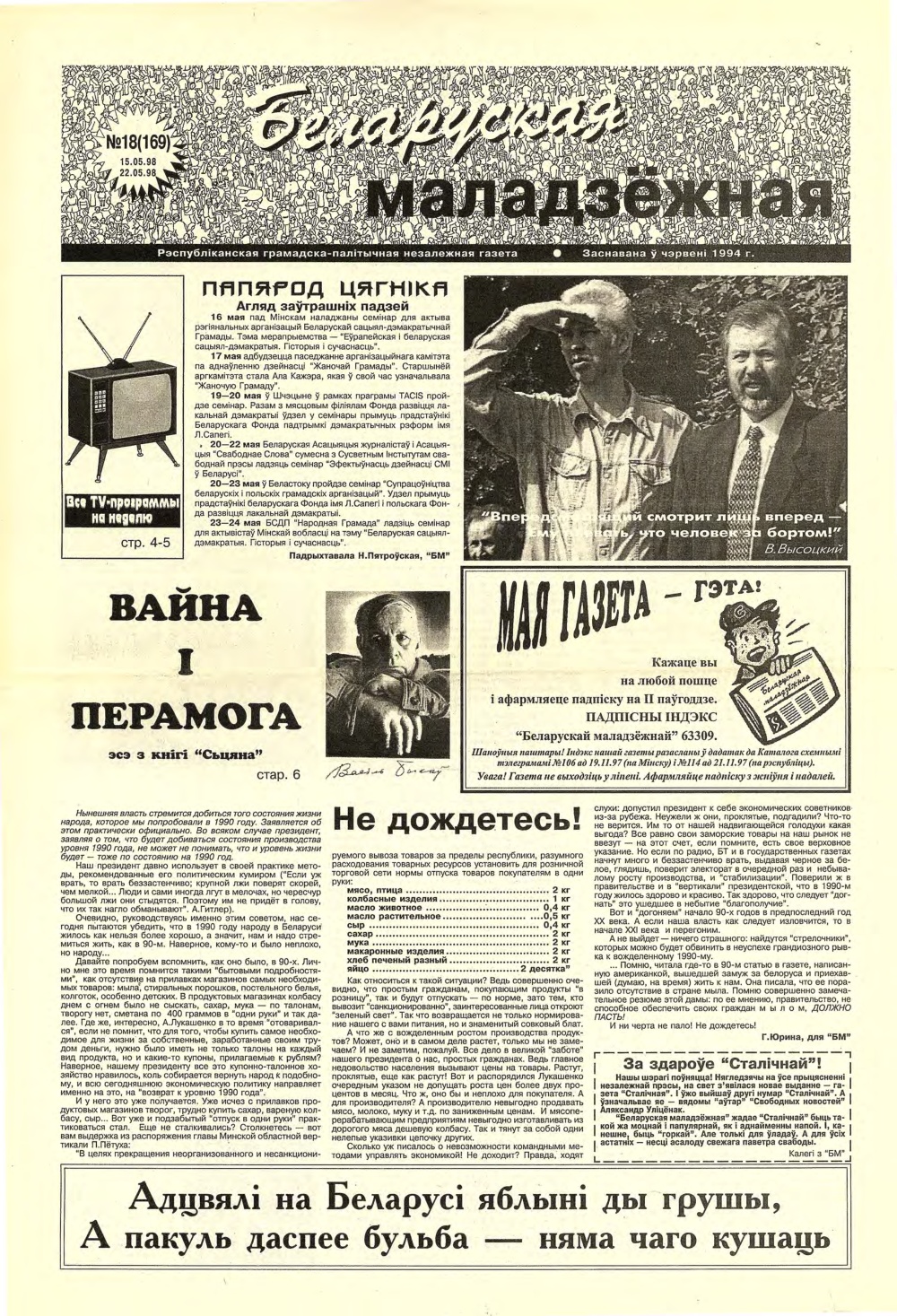 «Беларуская маладзёжная» (1994 - 2002) — беларуская газэта, дадатак да аднайменнай радыёстанцыі. Зарэгістраваная ў сакавіку 1994 году. У ёй друкаваліся расшыфроўкі радыйных гутарак, анонсы этэраў і ўсё, што не зьмяшчалася ў радыёфармат. Калі радыёстанцыю зачынілі, газэта засталася. Галоўны рэдактар — Тацьцяна Мельнічук. Традыцыйны фармат — 8 старонак А3. Газэта асьвятляла нараджэньне й разьвіцьцё палітычнай апазыцыі сярэдзіны-канца 1990-х, дзейнасьць незарэгістраваных моладзевых аб'яднаньняў з усіх бакоў палітычнага сьпектру, сачыла за разьвіцьцём й актуальным станам альтэрнатыўнай моладзевай культуры Беларусі. З 1995 па 1998 рэдакцыя газэты праводзіла у Менску вулічны рок-фэст «Купальле з Беларускай маладзёжнай». Апошні нумар выйшаў у чэрвені 2002 году. У кастрычніку 2003 году пасьведчаньне аб рэгістрацыі было скасаванае міністэрствам інфармацыі РБ. Крыница: be-tarask.wikipedia.org