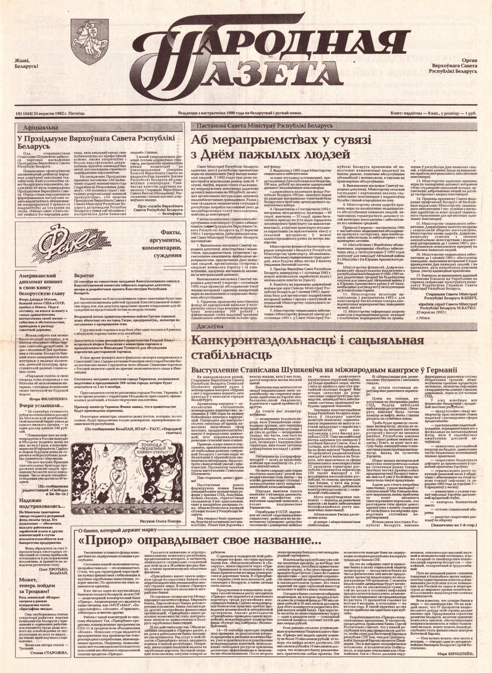 «Народная газета» — орган Вярхоўнага Савета Рэспублікі Беларусь. Выдавец: Адкрытае акцыянернае таварыства Народная газета. Выходзіць штодзённа, акрамя нядзелі і панядзелка, 250 разоў у год. Выдаецца з кастрычніка 1990 года на беларускай і рускай мовах. З 1990 па 1995 год пасаду галоўнага рэдактара «Народнай газеты» займаў Іосіф Сярэдзіч. З мая 1990 па студзень 1996 — дэпутат Вярхоўнага Савета XII склікання. Выданне займала ўмераную цэнтрысцкую пазыцыю, імкнучыся адлюстраваць палітычныя погляды большасці грамадзян. 17 сакавіка 1995 г. Указам № 113 Аляксандр Лукашэнка прызначыў галоўным рэдактарам «Народнай газеты» Мікалая Галко, не зважаючы на тое, што правам прызначаць галоўнага рэдактара сваёй уласнай газеты валодаў толькі Вярхоўны савет.