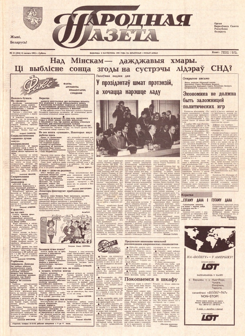 «Народная газета» — орган Вярхоўнага Савета Рэспублікі Беларусь. Выдавец: Адкрытае акцыянернае таварыства Народная газета. Выходзіць штодзённа, акрамя нядзелі і панядзелка, 250 разоў у год. Выдаецца з кастрычніка 1990 года на беларускай і рускай мовах. З 1990 па 1995 год пасаду галоўнага рэдактара «Народнай газеты» займаў Іосіф Сярэдзіч. З мая 1990 па студзень 1996 — дэпутат Вярхоўнага Савета XII склікання. Выданне займала ўмераную цэнтрысцкую пазыцыю, імкнучыся адлюстраваць палітычныя погляды большасці грамадзян. 17 сакавіка 1995 г. Указам № 113 Аляксандр Лукашэнка прызначыў галоўным рэдактарам «Народнай газеты» Мікалая Галко, не зважаючы на тое, што правам прызначаць галоўнага рэдактара сваёй уласнай газеты валодаў толькі Вярхоўны савет.