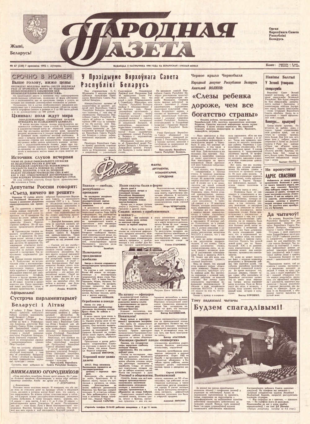 «Народная газета» — орган Вярхоўнага Савета Рэспублікі Беларусь. Выдавец: Адкрытае акцыянернае таварыства Народная газета. Выходзіць штодзённа, акрамя нядзелі і панядзелка, 250 разоў у год. Выдаецца з кастрычніка 1990 года на беларускай і рускай мовах. З 1990 па 1995 год пасаду галоўнага рэдактара «Народнай газеты» займаў Іосіф Сярэдзіч. З мая 1990 па студзень 1996 — дэпутат Вярхоўнага Савета XII склікання. Выданне займала ўмераную цэнтрысцкую пазыцыю, імкнучыся адлюстраваць палітычныя погляды большасці грамадзян. 17 сакавіка 1995 г. Указам № 113 Аляксандр Лукашэнка прызначыў галоўным рэдактарам «Народнай газеты» Мікалая Галко, не зважаючы на тое, што правам прызначаць галоўнага рэдактара сваёй уласнай газеты валодаў толькі Вярхоўны савет.