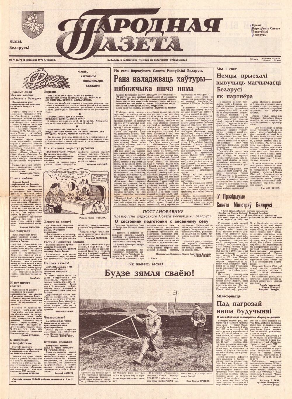 Народная газета 74 (337) 1992