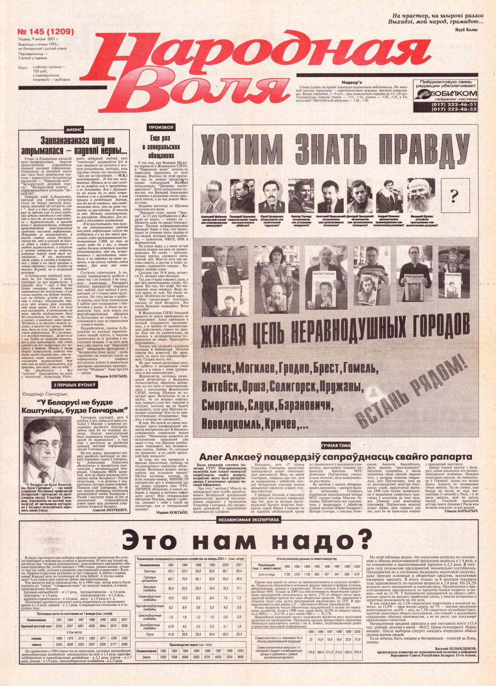 Народная Воля 145 (1209) 2001