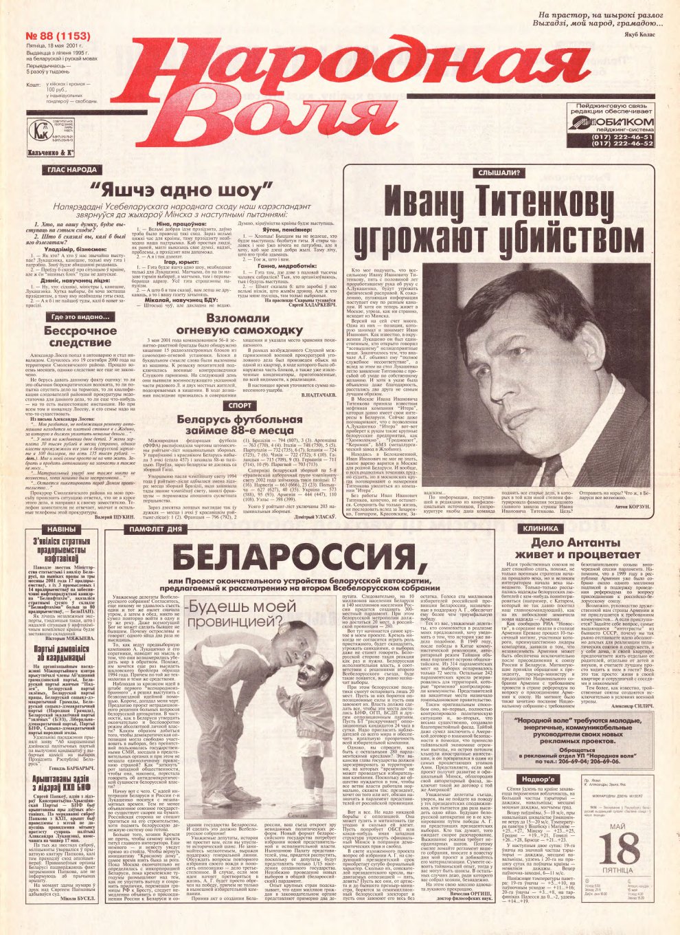 «Народная Воля» — беларуская грамадска-палітычная газета, выдаецца з ліпеня 1995 года на беларускай і рускай мовах. Перыядычнасць — 5 разоў у тыдзень. Створана Іосіфам Сярэдзічам, які дагэтуль працаваў галоўным рэдактарам «Народнай газеты» — афіцыйнай газеты Вярхоўнага Савета Рэспублікі Беларусь (законнага парламента). Газета займала ўмераную цэнтрысцкую пазіцыю, імкнучыся адлюстраваць палітычныя погляды большасці грамадзян.