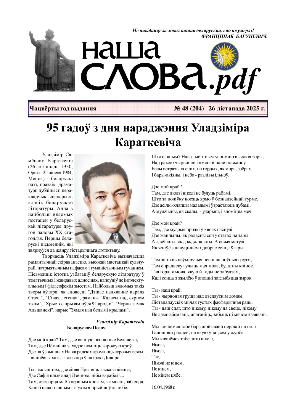 «Наша слова» — штотыднёвая газета. Змяшчае інфармацыйныя, публіцыстычныя, гістарычныя, палемічныя, агітацыйныя і мовазнаўчыя матэрыялы па праблемах беларускай мовы і культуры.