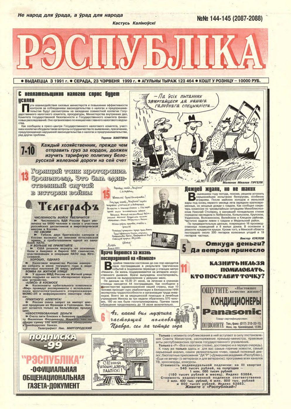 «Рэспубліка» — газета для тых, хто самастойна прымае рашэнні. Заснавальнік - Савет Міністраў Рэспублікі Беларусь. Выдаецца з чэрвеня 1991. Газета выходзіць 250 разоў у год. Аўтары апублікаваных матэрыялаў нясуць адказнасць за падбор і дакладнасць фактаў, іх меркаванні неабавязкова адлюстроўваюць пункт гледжання рэдакцыі. Рукапісы, фотаздымкі і малюнкі не рэцэнзуюцца і не вяртаюцца.