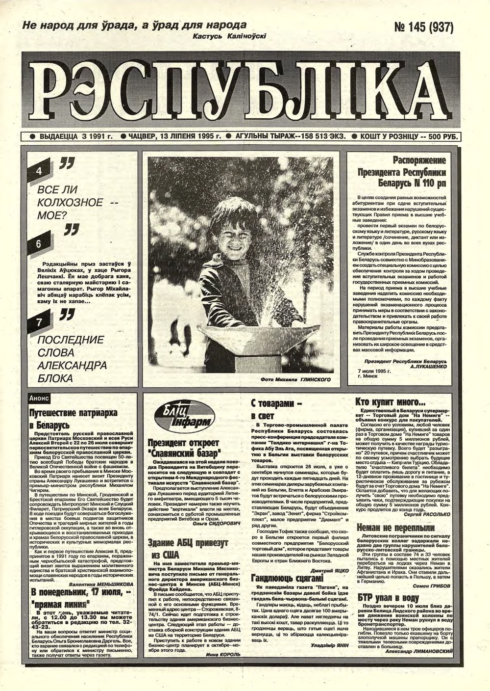 «Рэспубліка» — газета для тых, хто самастойна прымае рашэнні. Заснавальнік - Савет Міністраў Рэспублікі Беларусь. Выдаецца з чэрвеня 1991. Газета выходзіць 250 разоў у год. Аўтары апублікаваных матэрыялаў нясуць адказнасць за падбор і дакладнасць фактаў, іх меркаванні неабавязкова адлюстроўваюць пункт гледжання рэдакцыі. Рукапісы, фотаздымкі і малюнкі не рэцэнзуюцца і не вяртаюцца.