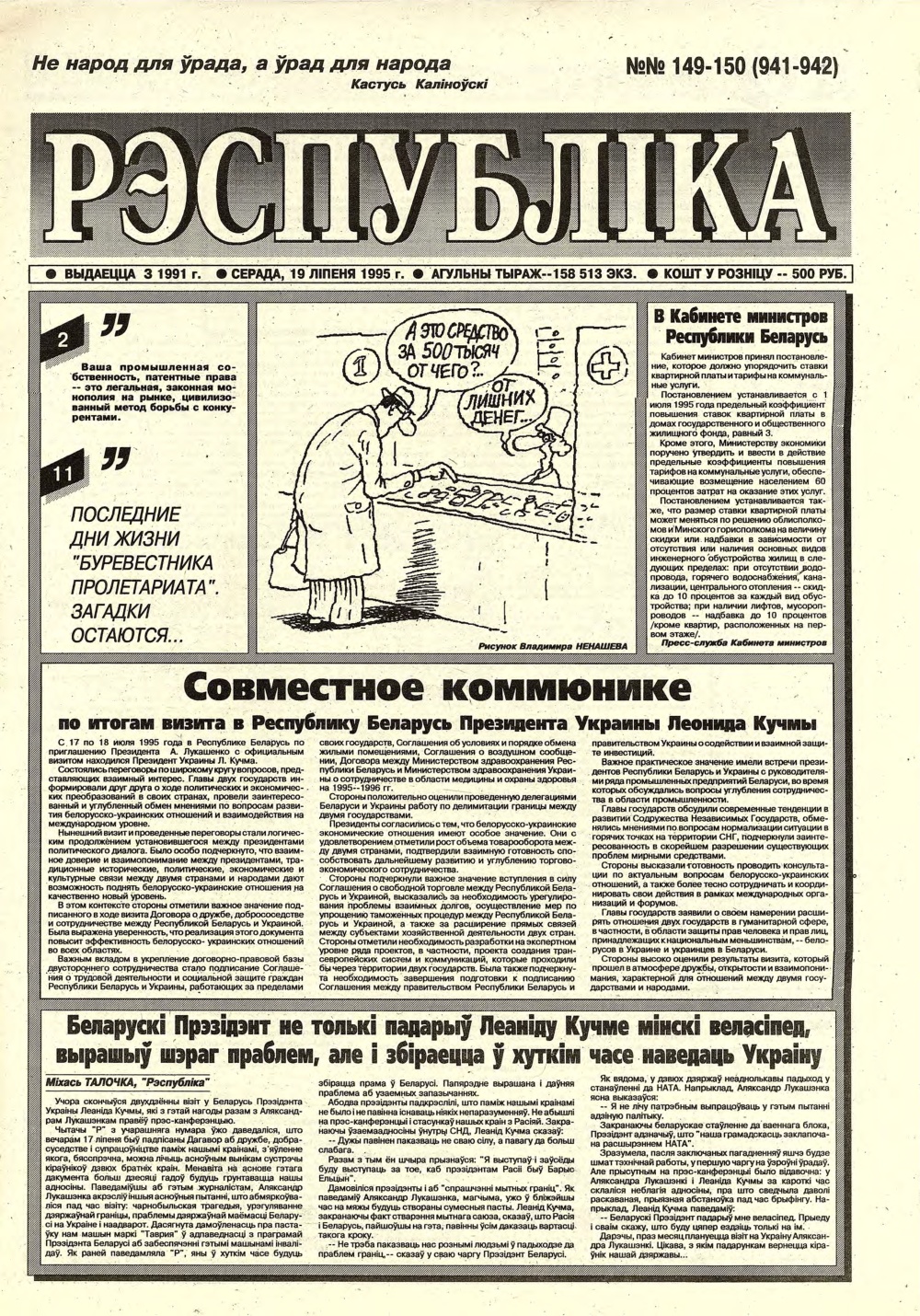 «Рэспубліка» — газета для тых, хто самастойна прымае рашэнні. Заснавальнік - Савет Міністраў Рэспублікі Беларусь. Выдаецца з чэрвеня 1991. Газета выходзіць 250 разоў у год. Аўтары апублікаваных матэрыялаў нясуць адказнасць за падбор і дакладнасць фактаў, іх меркаванні неабавязкова адлюстроўваюць пункт гледжання рэдакцыі. Рукапісы, фотаздымкі і малюнкі не рэцэнзуюцца і не вяртаюцца.
