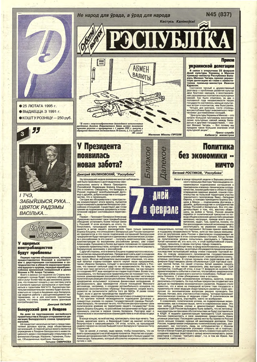 «Рэспубліка» — газета для тых, хто самастойна прымае рашэнні. Заснавальнік - Савет Міністраў Рэспублікі Беларусь. Выдаецца з чэрвеня 1991. Газета выходзіць 250 разоў у год. Аўтары апублікаваных матэрыялаў нясуць адказнасць за падбор і дакладнасць фактаў, іх меркаванні неабавязкова адлюстроўваюць пункт гледжання рэдакцыі. Рукапісы, фотаздымкі і малюнкі не рэцэнзуюцца і не вяртаюцца.