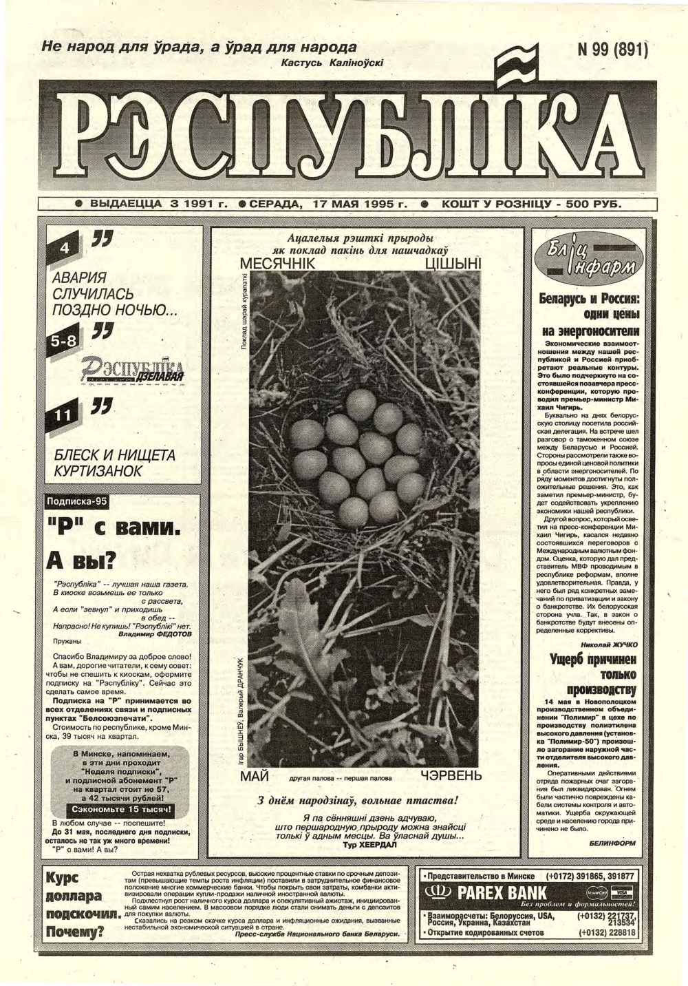 «Рэспубліка» — газета для тых, хто самастойна прымае рашэнні. Заснавальнік - Савет Міністраў Рэспублікі Беларусь. Выдаецца з чэрвеня 1991. Газета выходзіць 250 разоў у год. Аўтары апублікаваных матэрыялаў нясуць адказнасць за падбор і дакладнасць фактаў, іх меркаванні неабавязкова адлюстроўваюць пункт гледжання рэдакцыі. Рукапісы, фотаздымкі і малюнкі не рэцэнзуюцца і не вяртаюцца.