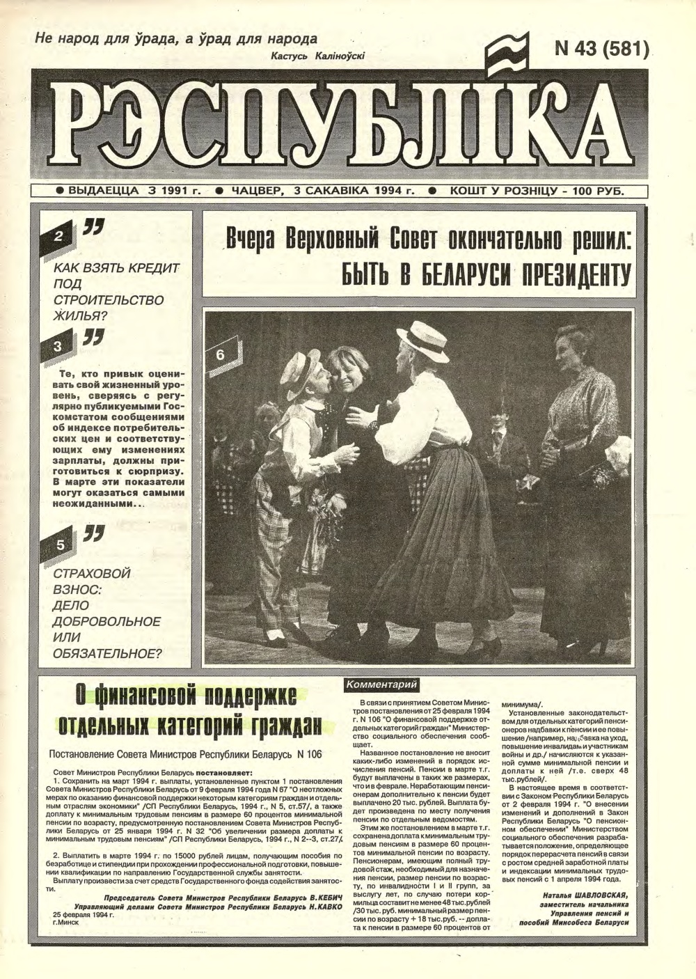 Рэспубліка 43 (581) 1994