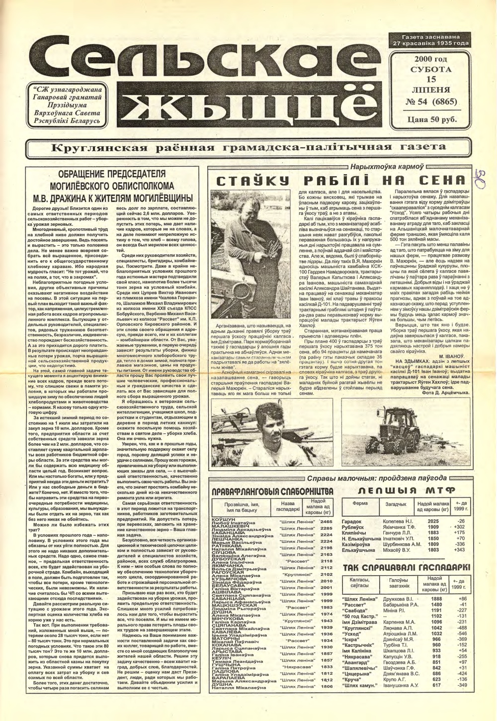 Сельскае жыццё 54 (6865) 2000