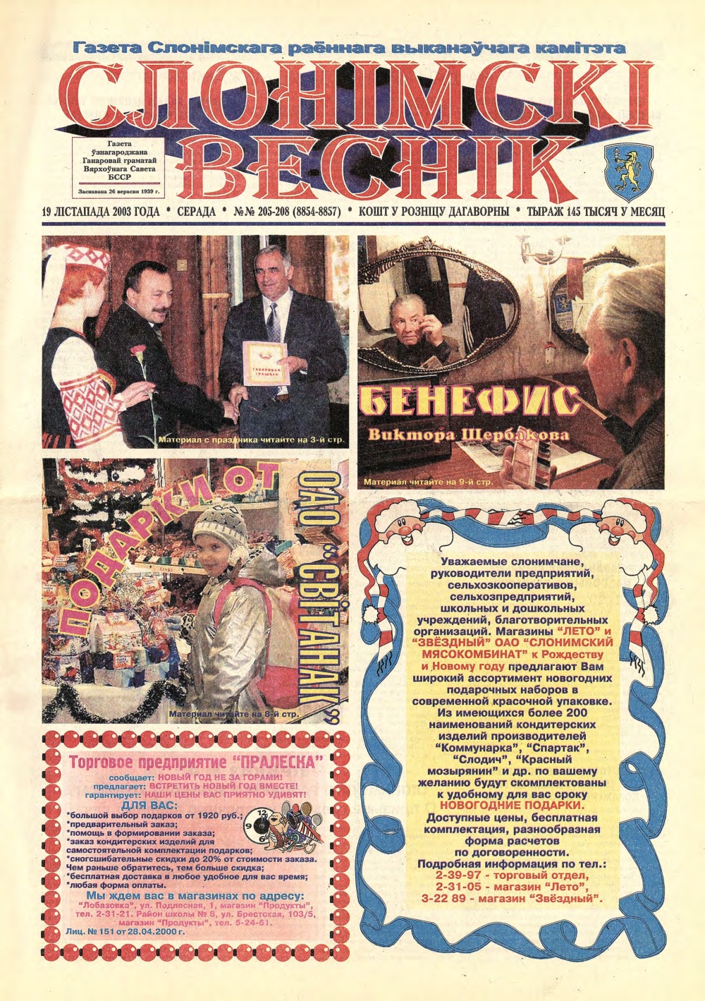 «Слонімскі веснік» — Грамадска-палітычная газета. Заснавана 26 верасня 1929 года. Заснавальнік: Слонімскі раённы Выканаўчы камітэт. Газета выходзіць 174 нумары ў год на беларускай і рускай мовах, аб’ём — два друкаваньш аркушы. Рэдакцыя можа друкаваць матэрыялы ў парадку абмеркавання, не падзяляючы пункту погляду аўтара. Пры перадрукоўцы матэрыялаў спасылка на СВ абавязковая.