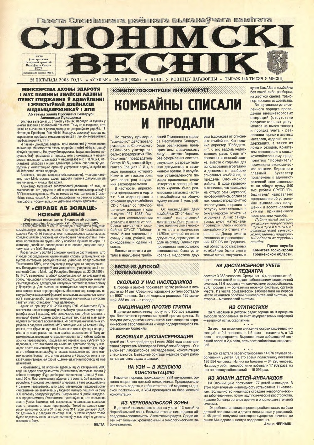 Слонімскі веснік 210 (8859) 2003