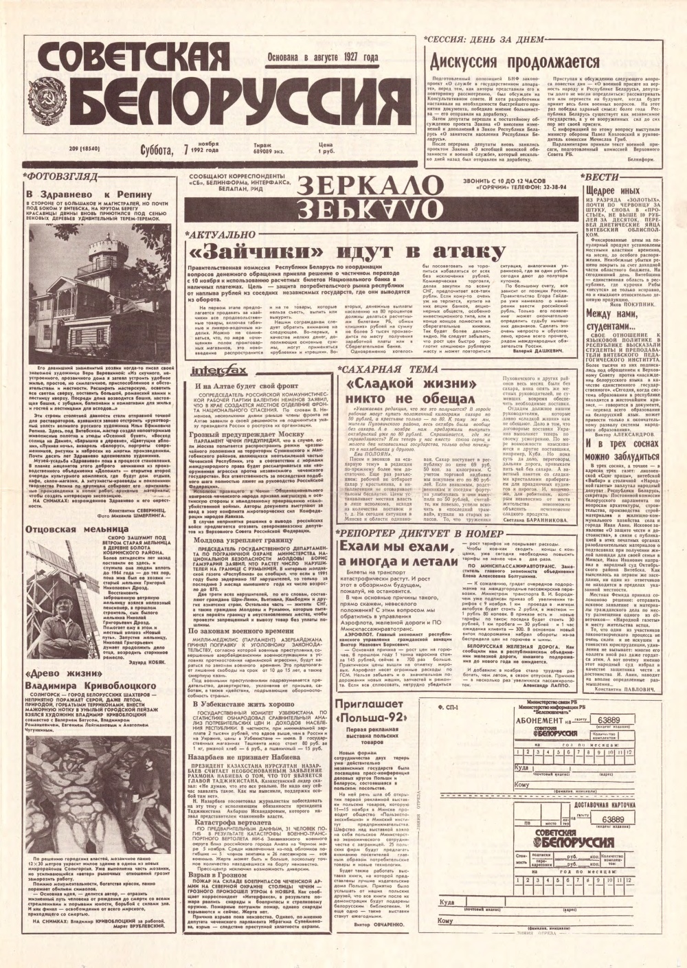 Советская Белоруссия 209 (18540) 1992