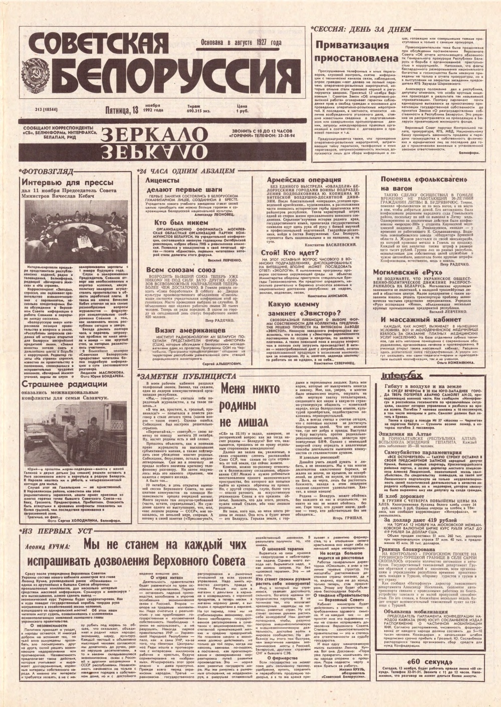 Советская Белоруссия 213 (18544) 1992