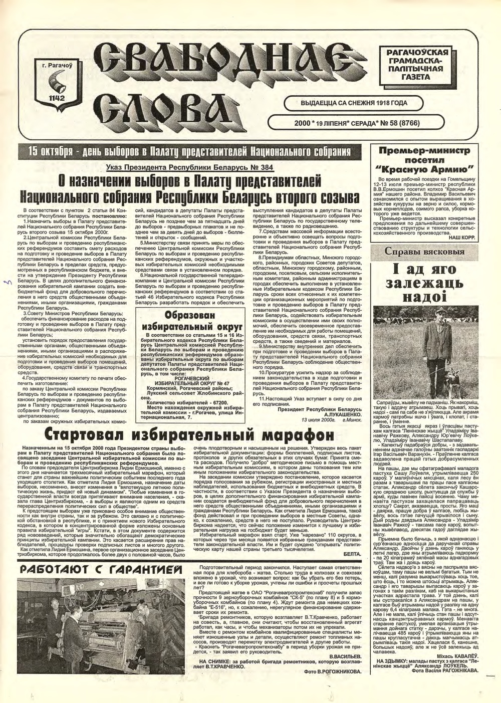 Свабоднае слова (Рагачоў) 58 (8766) 1996