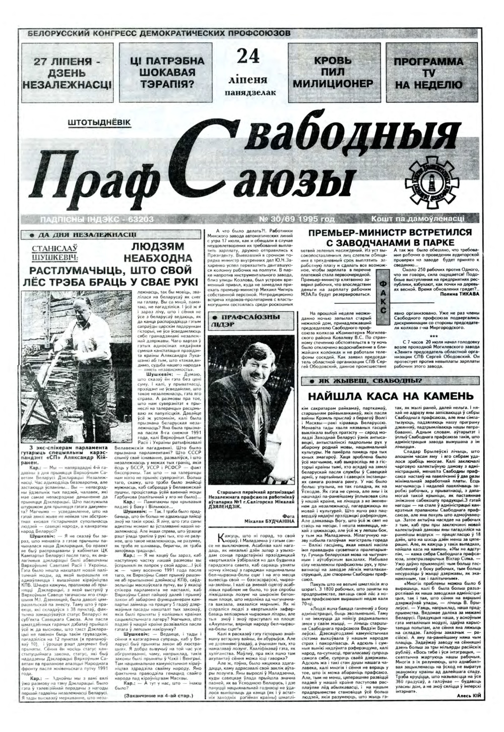 «Свабодныя прафсаюзы» — выдаецца з лістапада 1993 года на беларускай і рускай мовах. Заснавзльнікі: Беларускі кангрэс дэмакратычных прафсаюзаў. Рукапісы не рэцэнзуюцца і не вяртаюцца. Рэдакцыя можа друкаваць артыкулы ў парадку абмеркавання, не падзяляючы пункту гледжання аўтара.