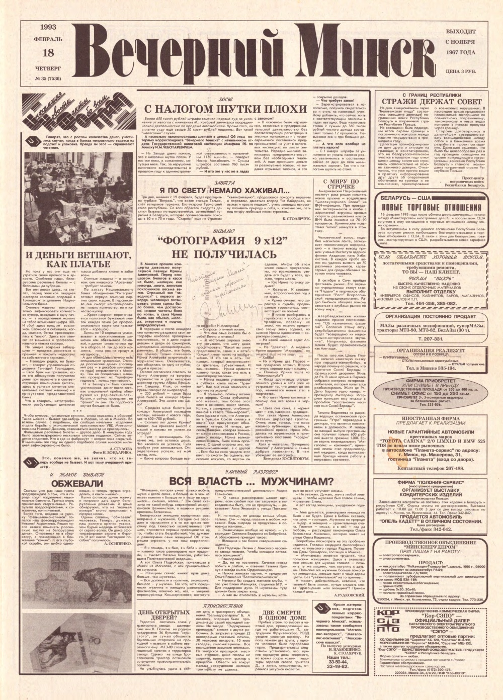 Вечерний Минск 35 (7536) 1993