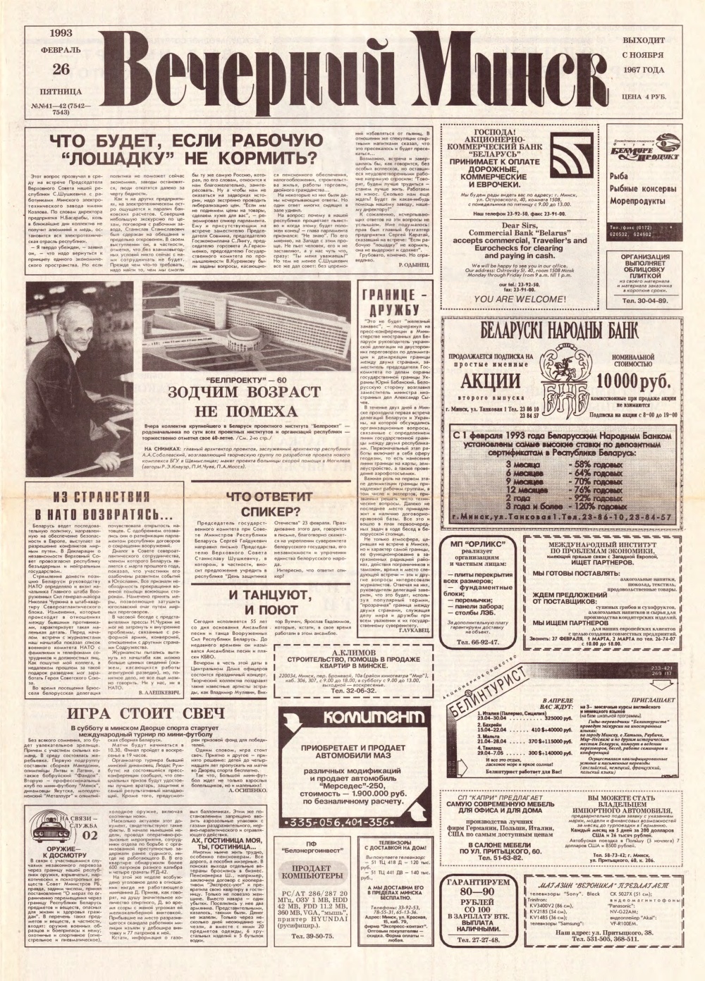 «Вечерний Минск» — выходит з ноября 1967 года. Учредитель: трудовой коллектив редакции газеты «Вечерний Минск». Газета издается на русском и белорусском языках, выходит 5 раз в неделю, кроме субботы и воскресенья — 250 раз в году.