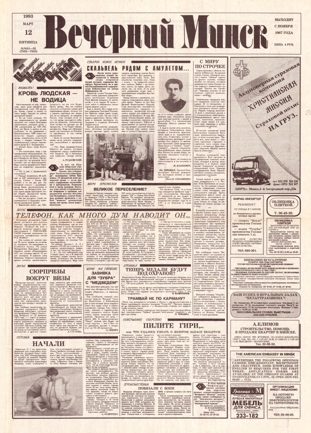 • Выдавец: трудовой коллектив редакции газеты Вечерний Минск