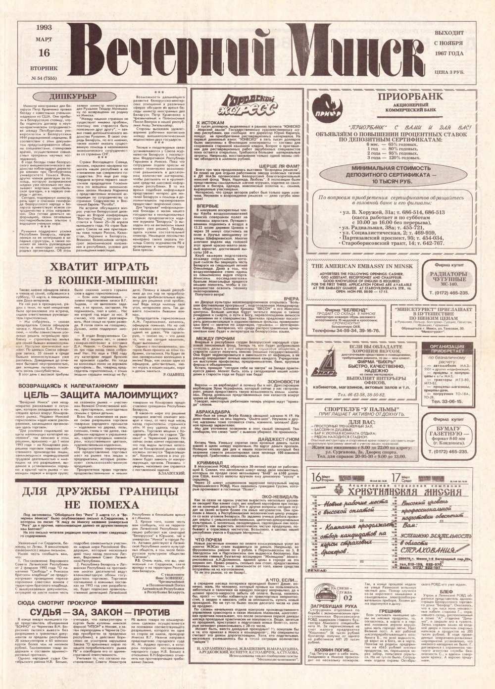• Выдавец: трудовой коллектив редакции газеты Вечерний Минск